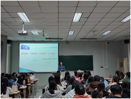 讲座中,钱静老师结合果园小学班级文化建设的实践经验,运用生动的图片、精彩的实例,从班级文化的概念与意义、班级文化的影响因素以及塑造班级文化的途径和方法等方面为同学们做了精彩的讲解。她指出,班级文化建设深受家庭文化、社会文化、校园文化等多方因素影响。作为班主任,要把握细节,加强物质文化建设、制度文化建设、精神文化建设和行为文化建设,从而营造良好的班级氛围,实现全面育人。讲座尾声,钱老师表达了对同学们的期待与嘱托。她希望各位同学能够不忘初心,珍惜校园时光,保持对教师行业的热情,积极进取,为未来而努力奋斗。
