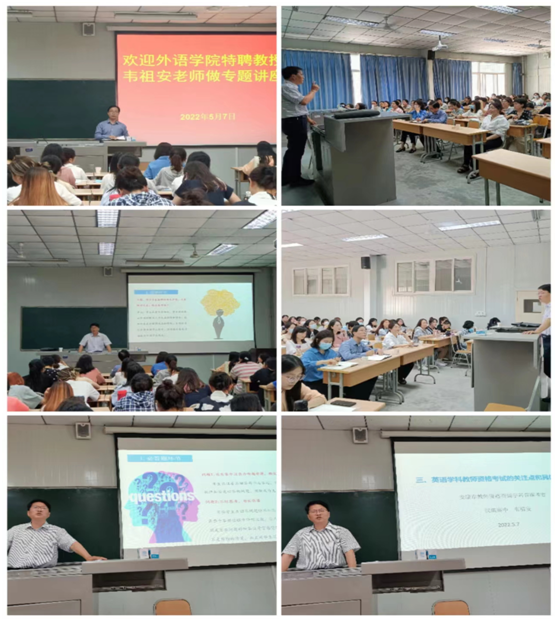为加强公司考生对中学英语教团队格证面试策略的了解,从容应对考试,5月7日beats365唯一官方网站特邀兼职教授韦祖安老师于1017教室开展教资面试专题讲座。经理张哲华、副经理胡卫卫、教师教育团队全体教师以及英语2018、2019级近百名师范生参加了讲座。