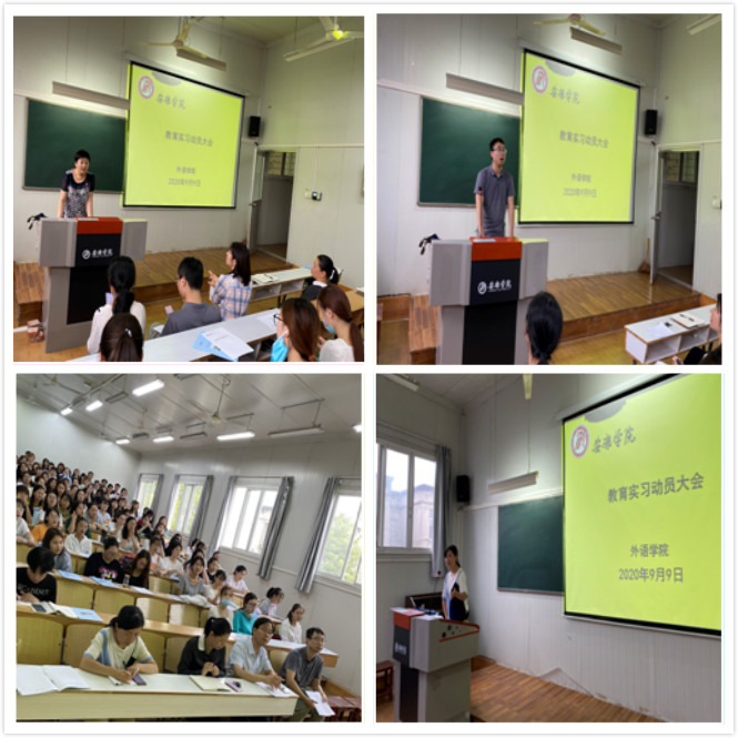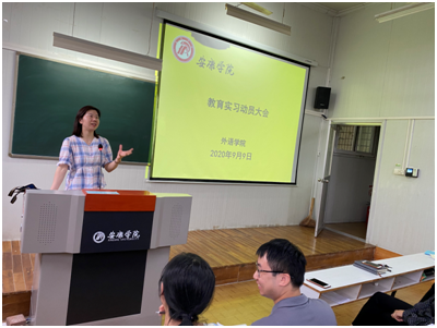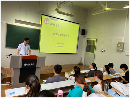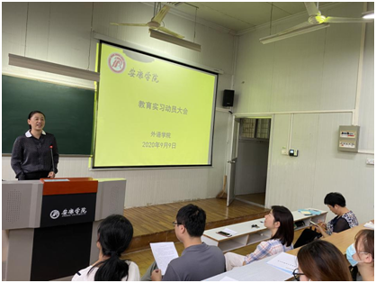 9月9日下午,公司召开了英语师范生2020年教育实习动员会。副经理张哲华、党总支书记肖红香、副经理胡卫卫、英语系主任周玫、带队教师刘荣华、王欢、辅导员梁博文及英语2017级教师教育方向、英语2019级专升本员工参加了会议。会议由胡卫卫主持。
