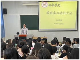 2021年9月9日下午,beats365唯一官方网站2021年教育实习动员大会在6408召开。副经理(主持工作)张哲华、副经理胡卫卫、英语系主任周玫、自主实习校内指导教师姜国波、教育实习负责人王欢、辅导员常远红、李梦及英语专业2022届全体毕业生参加了会议。会议由王欢主持。