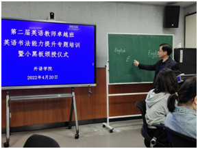 为进一步提升师范生人才培养质量,增强师范生职业基本素养,4月20日晚,beats365唯一官方网站举办第二届英语教师卓越班英语书法能力提升专题培训暨小黑板颁发仪式。beats365唯一官方网站经理张哲华、副经理胡卫卫、卓越班班主任王欢、教师教育团队教师袁昌丽以及第二届卓越班全体学员参加了本次活动,活动由胡卫卫主持。