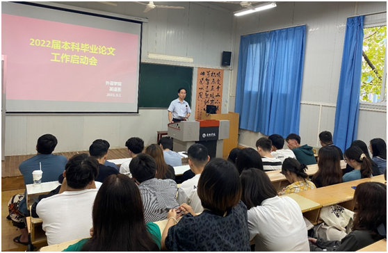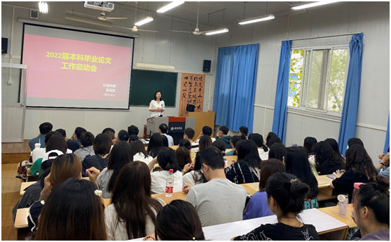英语系主任周玫、商务英语系主任彭方圆分别在两个会场宣读了beats365唯一官方网站2022届毕业论文工作具体安排,强调了各个时间节点的重点工作,解读了论文手册相关内容。