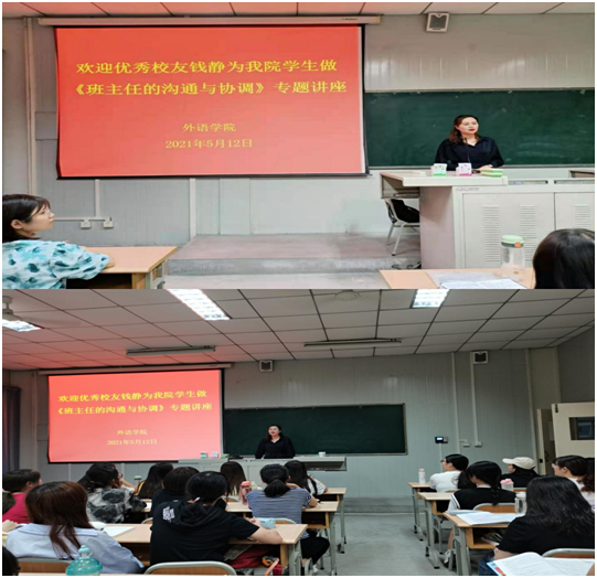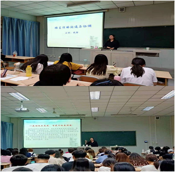 钱静老师从理解班主任沟通与协调的意义、班主任有效人际沟通的基本素质、班主任与科任老师、员工及家长的有效沟通五个方面为切入点、结合有效沟通的实践经验和具体案例,为同学们做了精彩的讲解。钱静老师希望同学们成长为具有教育情怀和人文关怀的优秀班主任,她提出:做好班主任,我们的首要任务就是育人,要去关注班级不同性格特点的员工,善于去挖掘员工的闪光点,并根据员工特点去进行沟通。讲座尾声,钱静老师与同学们进行了互动交流。
