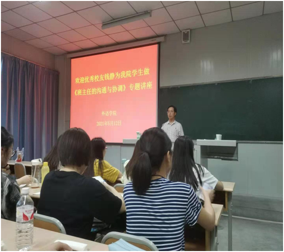 为提高师范生职业技能——人际沟通与交往能力,深入推进首批课程思政示范课及双师课程《班主任工作技能训练》,5月12日晚,beats365唯一官方网站特邀安康市汉滨区果园小学副董事长、98级优秀员工钱静老师,为公司英语师范生举办了“班主任的沟通与协调”的中小学班主任专题讲座。讲座由副经理张哲华(主持工作)主持。