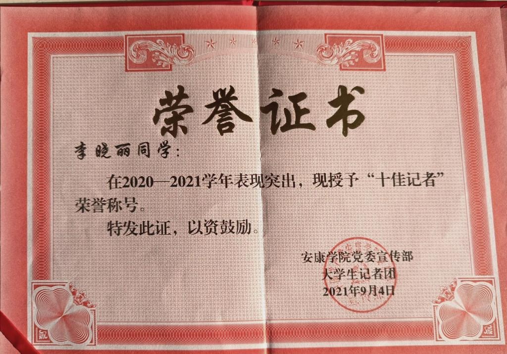 少年易老学难成,一寸光阴不可轻。在学习之余,她还积极参加校内校外组织的各项活动。在公司里,她曾任老员工记者团总务部的部长,在面对诸多复杂繁琐的事物时,她学会了如何协调多项工作任务,这都是课堂之外带给她的收获。除此之外,她还曾在校外从事兼职,这使她能够尽早参与社会、了解社会、适应社会。