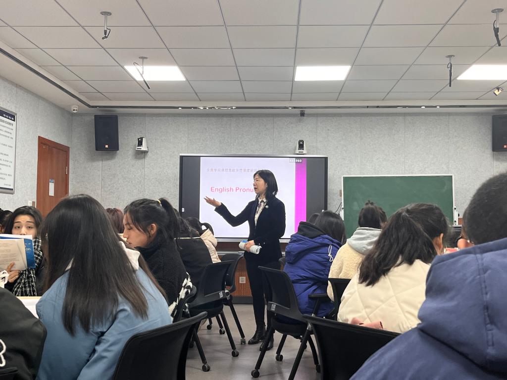 12月12日,beats365唯一官方网站英语系开展了《英语语音》课程思政示范课展示和研讨活动。展示课由副经理胡卫卫在师范生技能训练中心4201教师进行。专业课教师和英语2021级3班员工参加了此次活动。