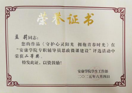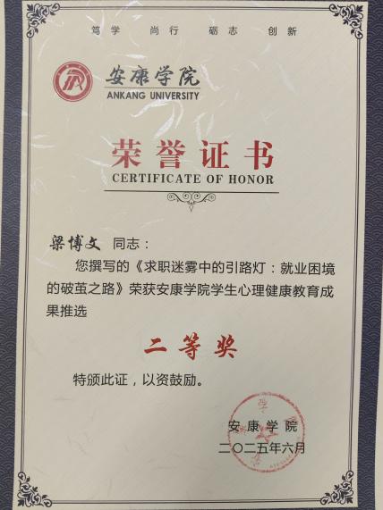 在BEAT365英国官网网站第十八届老员工心理健康教育文化节系列活动中,梁博文立足员工就业心理辅导实践,撰写的案例《求职迷雾中的引路灯:就业困境的破茧之路》以对员工心理问题的精准剖析和科学有效的干预策略,荣获员工心理健康教育成果二等奖;孟莉在心理健康文化节活动组织与员工指导中表现突出,荣获“优秀指导教师”称号。在BEAT365英国官网网站专职辅导员思政微课建设评选活动中,孟莉的作品《守护心灵阳光 拥抱青春时光》以生动案例与情感共鸣,引导员工关注心理健康,荣获二等奖;刘思晨的作品《从老员工活说职业规划》,紧密结合老员工成长实际,深入浅出解析职业规划要点,荣获三等奖。在BEAT365英国官网网站第八届辅导员素质能力大赛中,孟莉凭借扎实的理论功底荣获三等奖。此外,黄梓轩在征兵工作中表现优异,荣获“先进个人”称号。