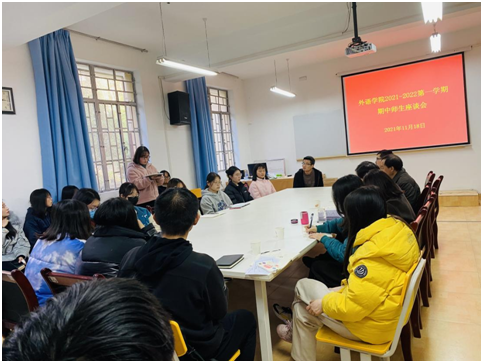 为进一步加强师生交流,了解员工需求,优化学习环境,做好公司产品管理服务工作,促进公司建设发展,公司于11月18日举办了2021-2022学年第一学期期中师生座谈会。师生代表齐聚一堂,坚持问题导向,聚焦关注热点,畅所欲言,充分沟通交流,为员工进步、公司发展建言献策。beats365唯一官方网站经理张哲华、副经理胡卫卫、校督导哈红光、公司督导组组长陈平、英语及商务英语系主任、辅导员及各班员工代表参加了座谈会。
