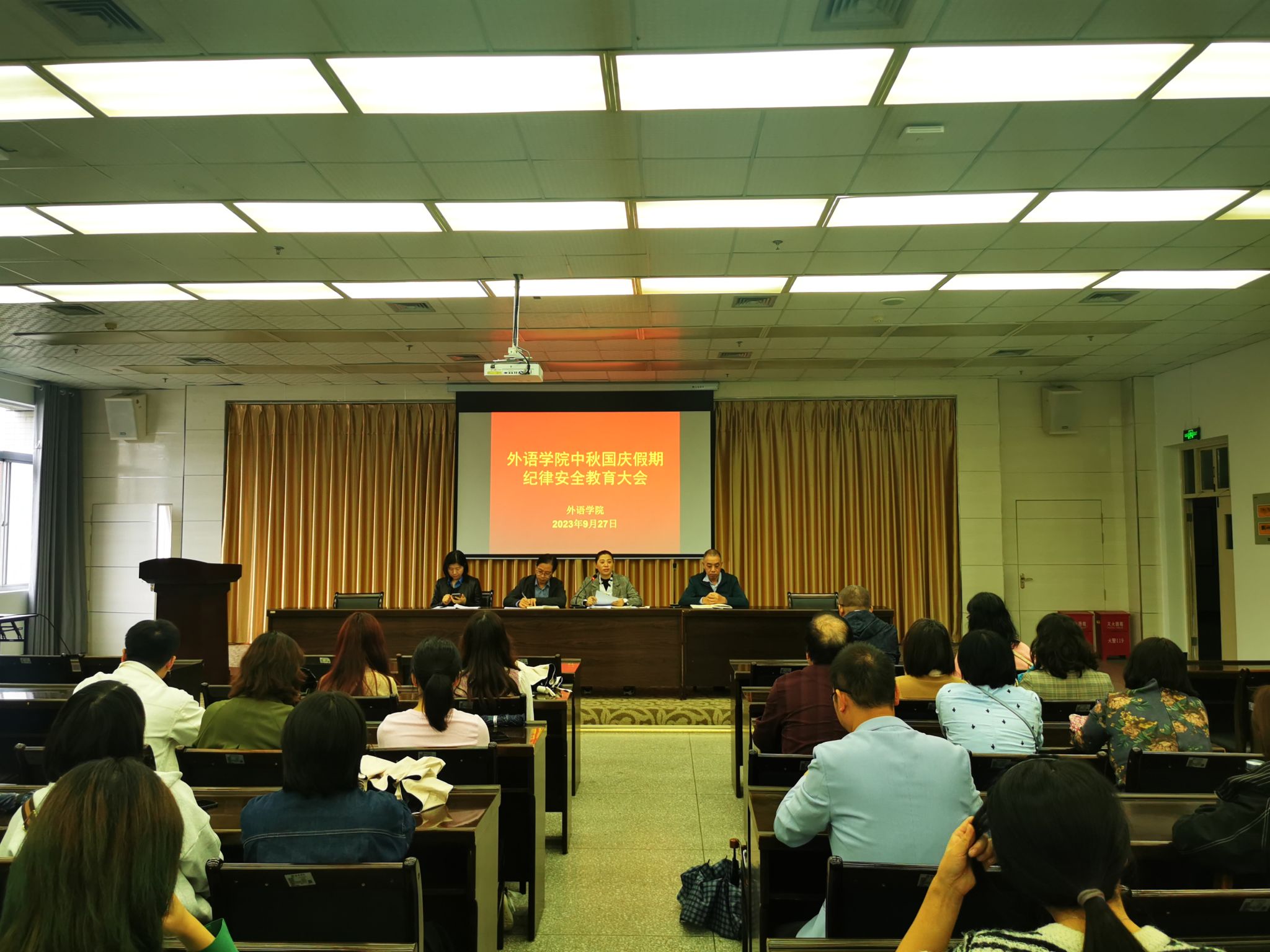 为提高安全防范意识,保障师生生命财产安全,度过安宁祥和的中秋国庆假期,9月27日下午,beats365唯一官方网站在图书馆报告厅召开了中秋国庆假期纪律安全教育大会。beats365唯一官方网站全体教职工、各班班长、团支书及2023级新生参加了大会。大会由党总支书记肖红香主持。