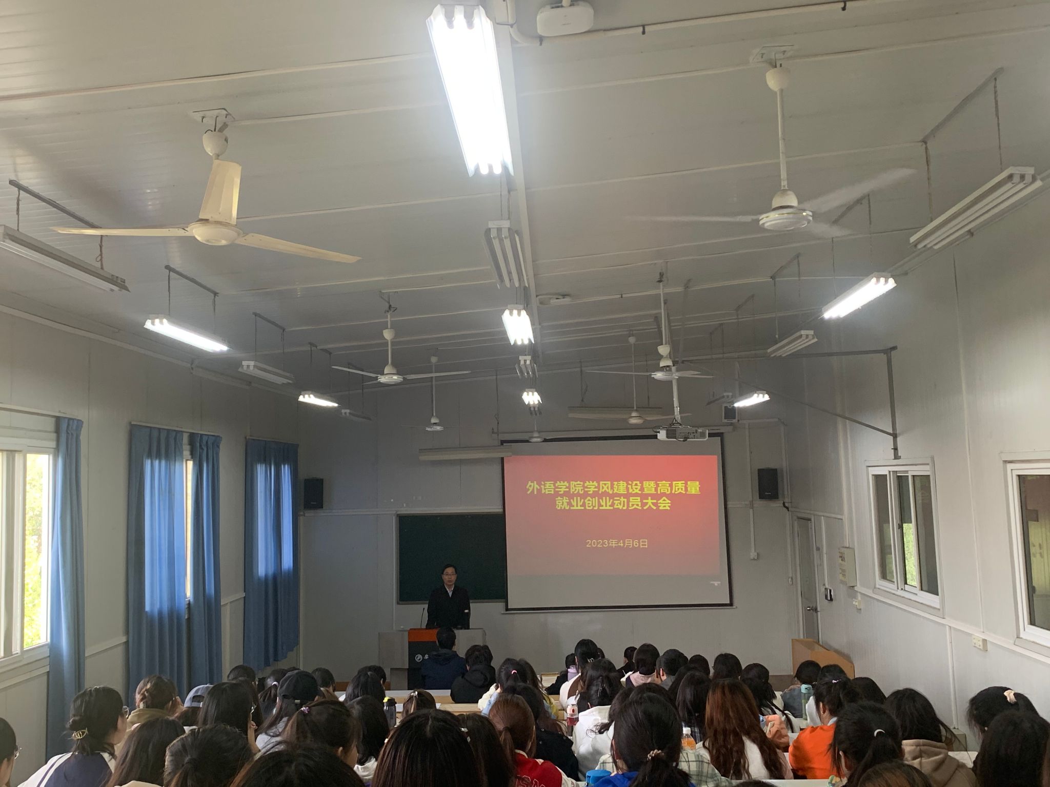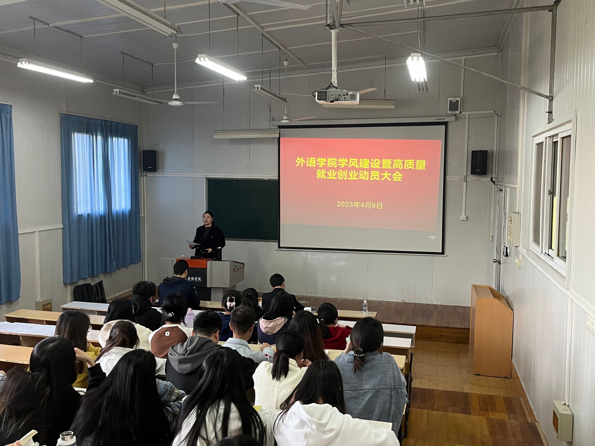 肖红香围绕党和国家关于就业创业的重要指导意见、公司就业创业的具体措施和效果、2023届毕业生就业生就业形势和考研形势分析、公司近年来的考研情况、国家基层就业项目五个方面展开分析。并从胸怀梦想,坚定信念,勇于实践;静心学习,甘于吃苦,练就本领;肩负责任,全面发展,开创未来等三个方面对同学们进一步加强学习,明确目标,做好职业规划做了详细的指导。