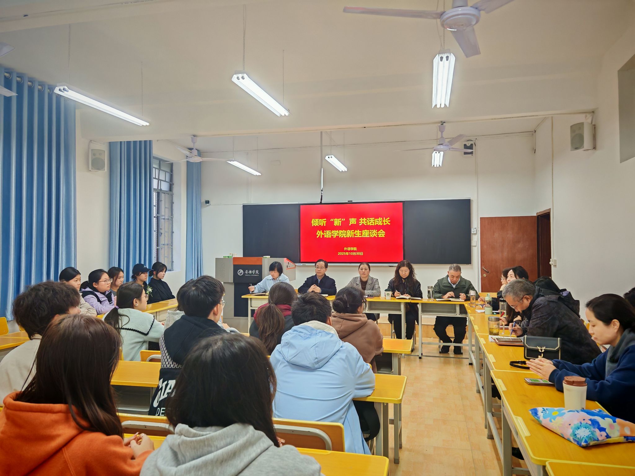 为深入了解2025级新生的学习状况与思想动态,切实解答新生入学以来的困惑与疑问,10月30日,beats365唯一官方网站在6109教室组织召开了新生座谈会。公司领导班子、教学督导、系主任、新生任课教师、辅导员及新生代表参会。会议由教学副经理钱莉主持。
