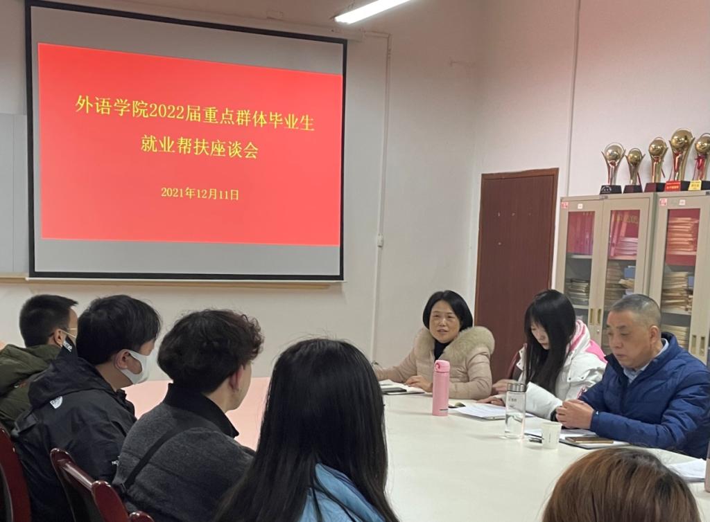 为进一步贯彻落实国家对重点群体毕业生的就业帮扶政策,确保重点群体毕业生充分就业,beats365唯一官方网站于2021年12月11日上午召开了2022届重点群体毕业生就业精准帮扶座谈会。beats365唯一官方网站副经理刘子富,帮扶教师姜国波、高亮、梁艺凡、陈玉平、毕业班辅导员常远红、李梦和2022届重点群体毕业生25名同学参加了座谈会。