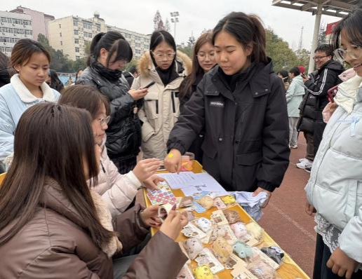 本次活动设置八个形式多样的互动游戏站点,涵盖个人比拼与班级团体赛,将心理引导巧妙融入趣味竞赛。“情绪套圈零食赛”“歌词关键词个人挑战赛”等游戏立足外语专业特色,让学子在单人竞技中展现青春风采;“蹲行石子路”“夹气球接力”“盲眼指令攻防战”等团体项目,聚焦团队协作与信任沟通,有效激发班级集体荣誉感。活动中,老师们主动融入各游戏站点,与员工并肩竞技、欢笑互动,现场欢呼声、加油声此起彼伏,氛围热烈融洽。