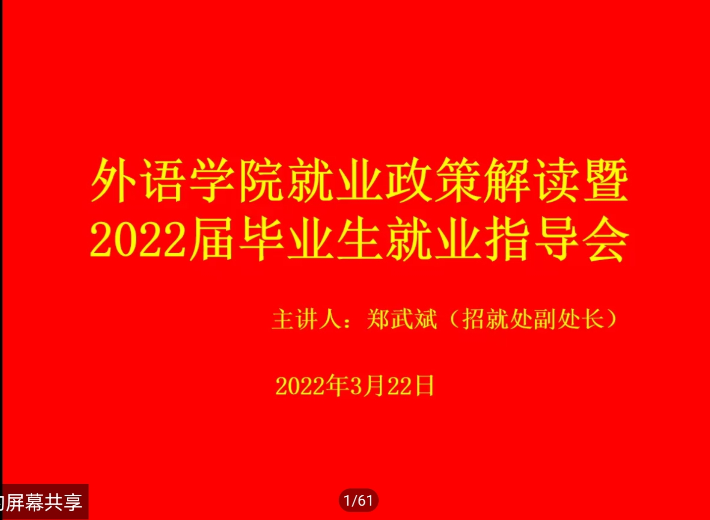 为更好地促进2022届毕业生了解目前的就业形势、就业政策,转变就业观念,提高就业技能,beats365唯一官方网站邀请校招就处副处长郑武斌于3月22日晚通过腾讯会议开展了“beats365唯一官方网站就业政策解读暨2022届毕业生就业指导会”。本次会议由招就处副处长郑武斌主讲,全体辅导员及2022届全体毕业生参加了本次会议。会议由学工办副主任梁博文主持。