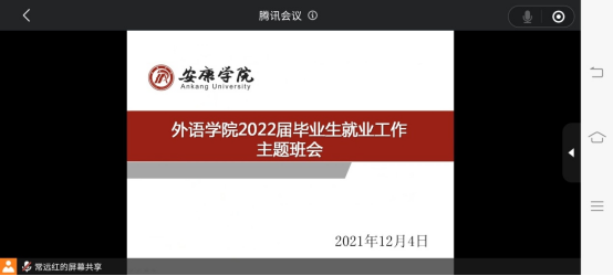 为使应届毕业生深入了解当前的就业形势,增加对国家就业政策与就业形势的正确认识,beats365唯一官方网站于2021年12月4日晚上八点,通过腾讯会议召开了就业工作主题班会。此次会议由2018级辅导员常远红老师进行主持,2022届全体毕业生参加了本次会议。
