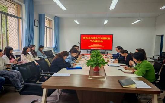 为积极搭建校企合作平台,助推2026届毕业生就业工作,9月26日下午,beats365唯一官方网站与安康市汉滨区译泰英语培训公司、西安市米恩英语培训公司有限公司安康市分公司共同召开校企合作暨2026届毕业生就业工作座谈会。公司领导班子、各办公室主任、辅导员及员工代表参加会议。座谈会由副经理钱莉主持。