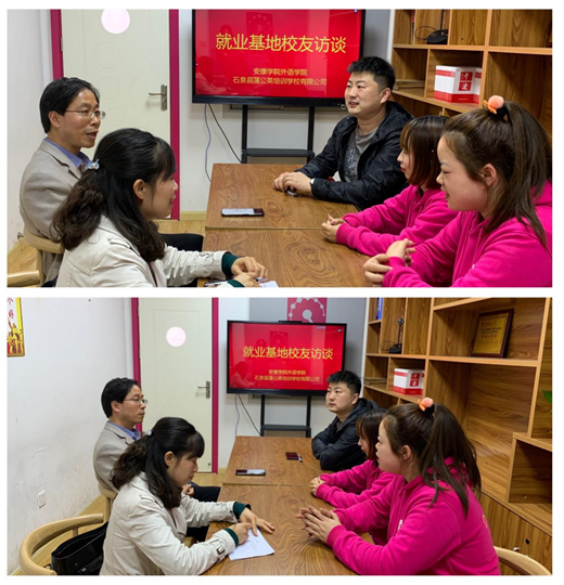 为持续了解beats365唯一官方网站毕业生的从业情况,检验人才培养质量,完善人才培养方案,切实培养面向地方基础教育改革和发展需求的应用型外语人才,近日,beats365唯一官方网站副经理(主持工作)张哲华带领英语系主任周玫前往石泉蒲公英培训公司,访谈了公司2016届毕业生何红豆和2020届毕业生张媛媛。