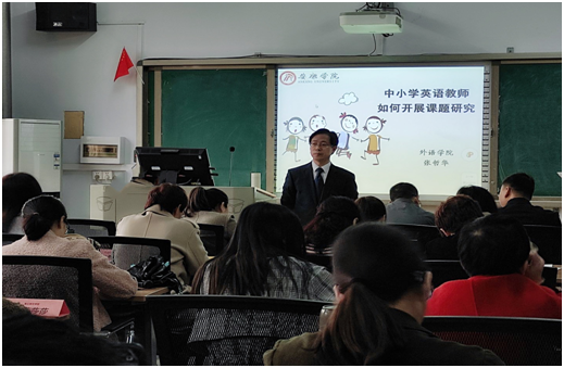 来自河南省各地市的50名初中英语骨干教师在为期一天的时间里,认真聆听了张哲华副教授《中小学英语教师科研方法探讨》的精彩讲座。在讲座中,张哲华从中小学英语教师的科研素养谈起,向学员主要讲授了如何申报基础教育课题和撰写教研论文。讲座准备充分,内容详实,案例丰富,实用性强,受到了培训学员的一致好评。