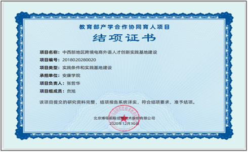 近日,由公司副经理(主持工作)张哲华承担的教育部产学研协同育人项目“中西部地区跨境电商外语人才创新实践基地建设(2018020280020)”顺利通过结题验收。