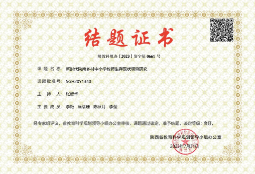 张哲华老师主持的课题《新时代陕南乡村中小学教师生存现状调查研究》(SGH20Y1340),通过研究团队的系统认真研究,先后完成调研报告1篇,公开发表研究论文2篇,完成研究报告1篇。在振兴新时代乡村教育背景下,综合运用文献分析、比较研究、问卷调研和案例研究等多种方法,研究了陕南乡村中小学教师生存现状,发现该地区乡村教师队伍仍面临职业吸引力不强、补充渠道不畅、优质资源配置不足、结构不尽合理、整体素质不高等突出问题,提出了多措并举减轻教师工作压力、政策保障提高教师工资待遇、重视改善教师工作生活环境、分类指导加大职称改革力度、搭建平台增强教师培训力度等对策,为教育行政部门制定相关教育政策提供了有益借鉴。