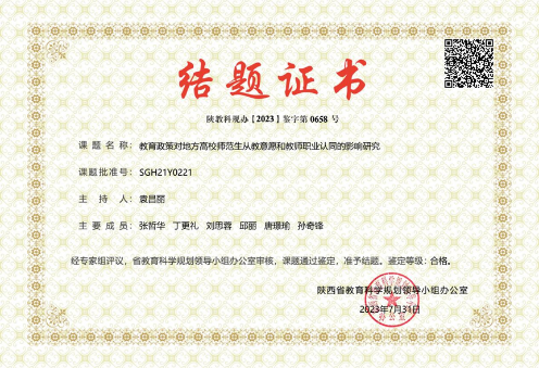 根据陕西省教育科学规划领导小组办公室公布的《2023年第二期陕西省教育科学规划课题结题名单的通知》,公司经理张哲华主持的《新时代陕南乡村中小学教师生存现状调查研究》、朱蕾老师主持的《基于需求分析的理工科员工学术英语能力培养模式研究》和袁昌丽老师主持的《教育政策对地方高校师范生从教意愿和教师职业认同的影响研究》等3项课题顺利通过结题验收工作。