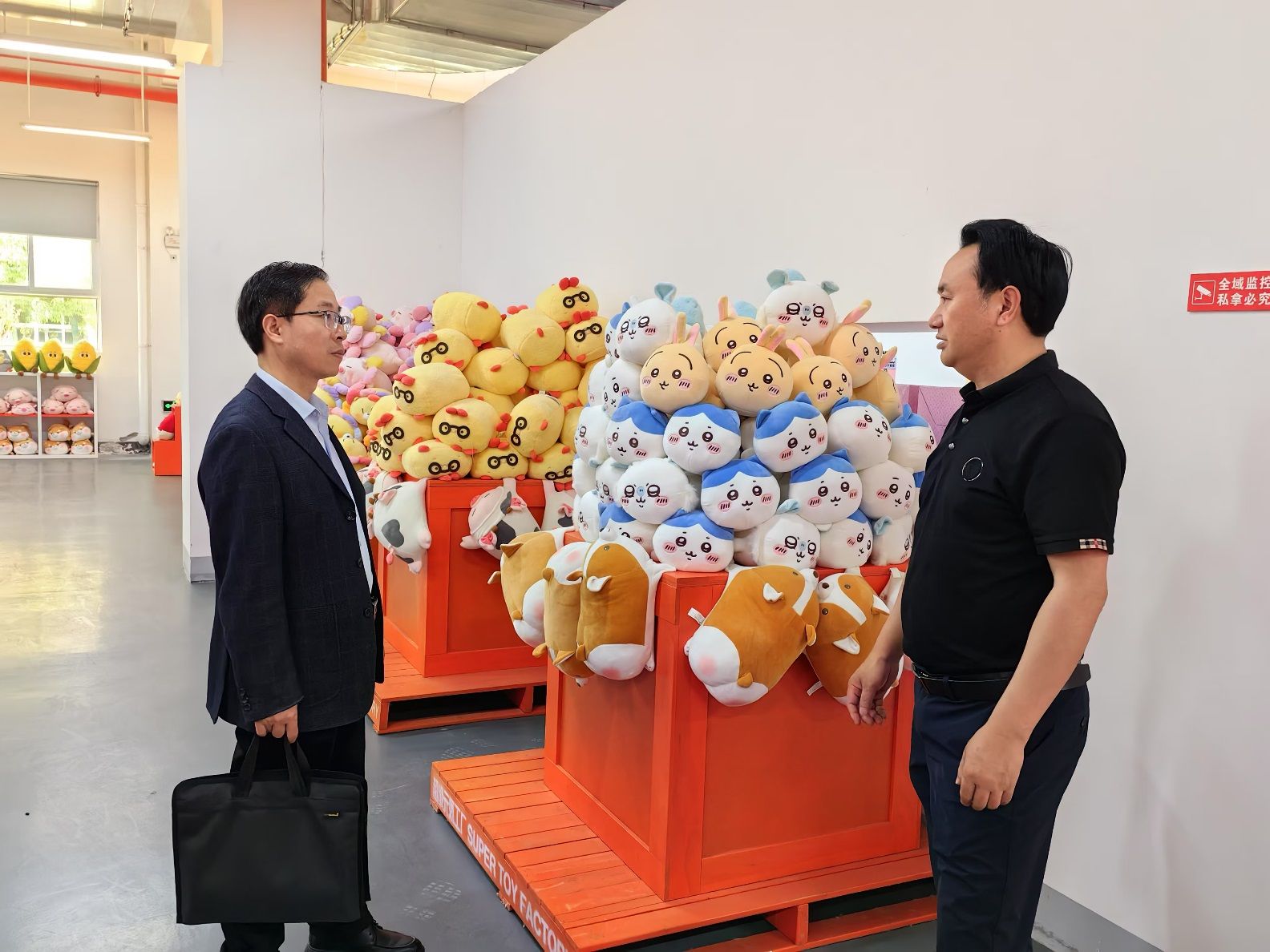 调研期间,受访企业就毛绒玩具企业的产品定位、市场开发、营销战略、产业链布局等进行广泛深入交流。企业负责人分别介绍了企业在毛绒玩具领域的产品研发、潮玩标准建设、知识产权保护、社区工厂等方面的发展现状。张哲华围绕公司商务英语专业人才培养和学科专业建设等方面进行了深入交流。刘子富从科研与社会服务方面交流了未来合作内容与领域。
