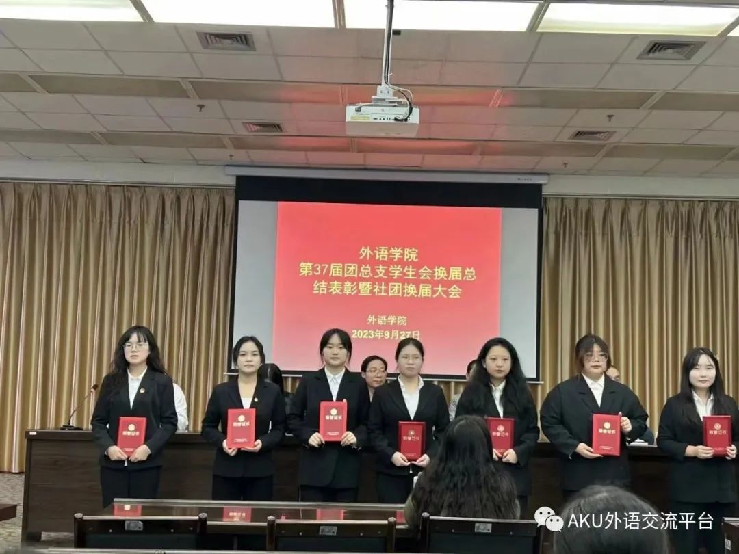 会议第三项,党总支书记肖红香宣布第37届团总支员工会各部门负责人名单并为优秀主席、干事、外院各专业社团优秀社长颁发荣誉证书。最后,张哲华经理做了大会总结,对往届团总支员工会成员的工作表示肯定,并对新一届成员提出了殷切期望。