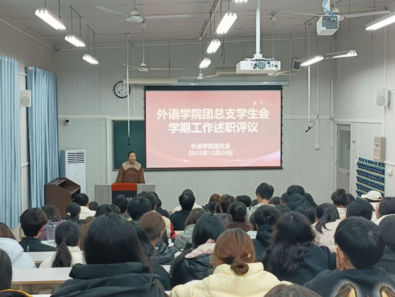 最后,孟莉对全体团总支员工会干部本学期的辛勤付出与显著成效给予充分肯定。她强调,员工骨干是公司联系广大同学的桥梁纽带,是推动公司发展的重要力量,希望大家以此次述职为契机,进一步强化责任担当与使命意识,并提出三点要求:一是坚守服务初心,主动担当作为,摒弃“等安排、靠指令”的被动心态,以实际行动服务同学;二是锚定能力提升,增强工作实效,将外语专业优势与团学工作深度融合,锤炼组织协调、沟通表达等核心素养;三是深化协同联动,凝聚工作合力,树牢“一盘棋”思想,打破部门壁垒,实现资源互补、工作同频。