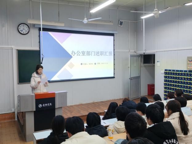 会议伊始,各部门负责人依次述职汇报,紧扣学期工作重点任务,以详实数据支撑与具体案例佐证,系统回顾了在组织建设、学风建设、活动开展、服务员工等方面工作的推进情况与实际成效,全面总结工作亮点与经验做法。同时,结合工作实际客观剖析工作中存在的不足,并立足部门职能定位,精准规划下一阶段工作重点与发展方向。