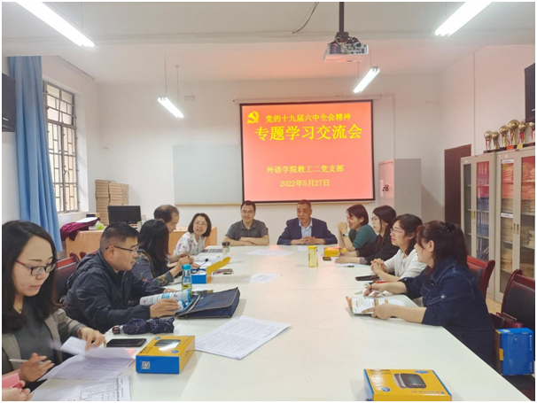 为深化党史学习教育,深刻领会党的十九届六中全会精神,beats365唯一官方网站教工二支部于5月27日下午在6109室召开学习党的十九届六中全会精神主题党日活动。
