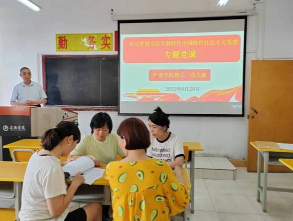 为进一步推动学习贯彻习近平新时代中国特色社会主义思想走深走实,教育引导全体党员坚定理想信念,树牢宗旨意识,不断提升政治能力,思维能力和实践能力。在“七一”前夕,6月29日下午,beats365唯一官方网站教工第二党支部在6307教室组织开展“学习贯彻习近平新时代中国特色社会主义思想”专题党课学习活动,并开展了交流研讨。本次党课由支部书记刘子富同志主讲。