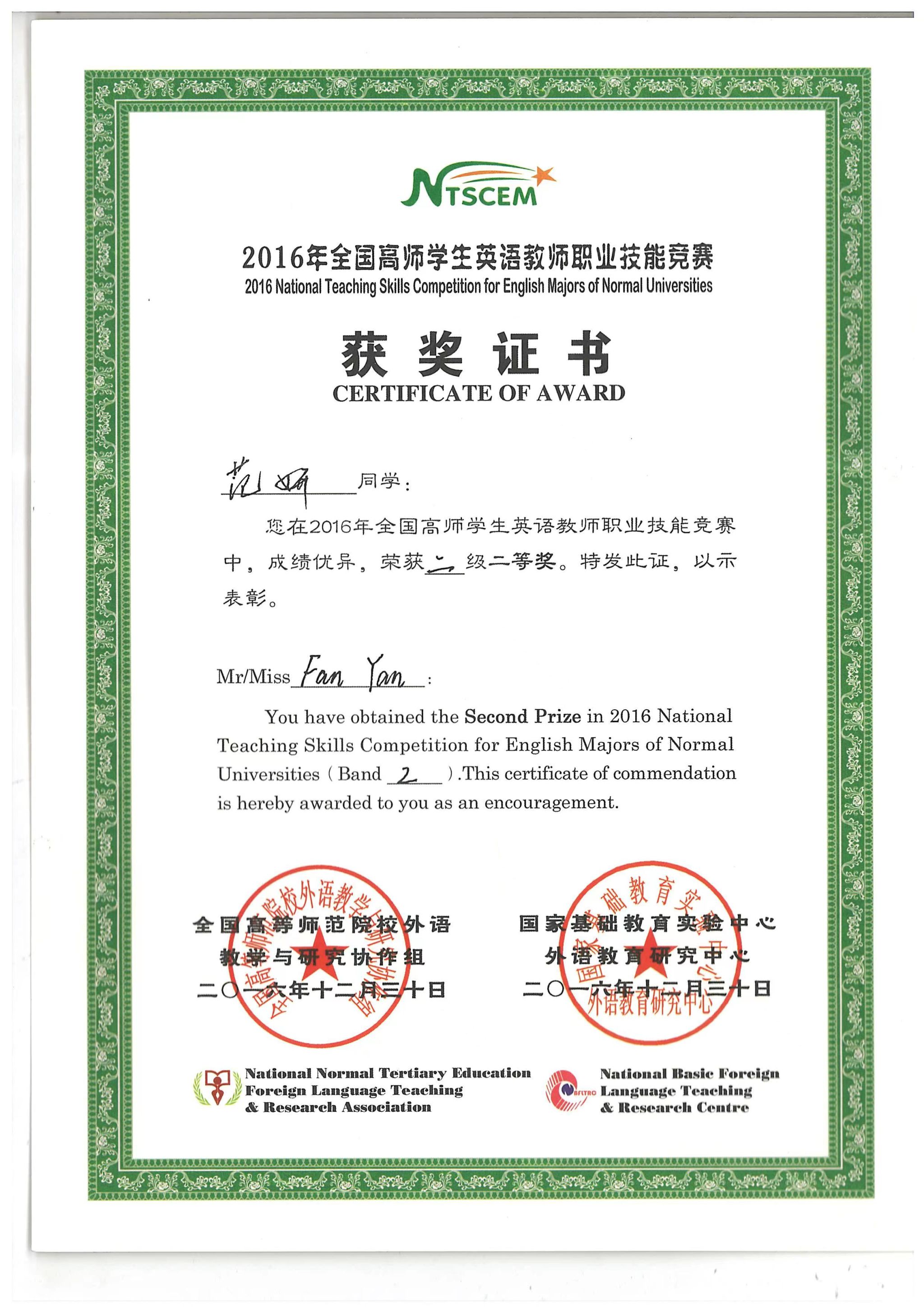 上一条:全国高师员工英语教师职业技能竞赛获奖证书4 下一条:全国高师员工英语教师职业技能竞赛获奖证书2