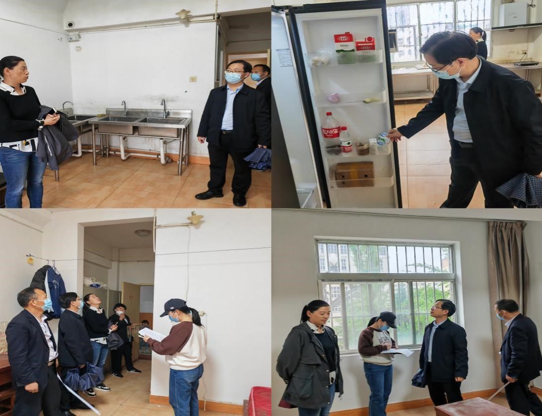 2023年5月26日下午,国际教育公司经理张哲华、副经理肖红香、学工办副主任黄梓轩、后勤处工作人员和施工队负责人参加职工公寓维修工程验收。
