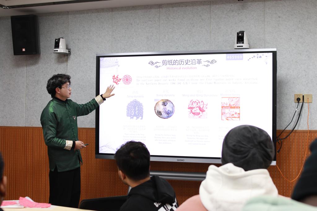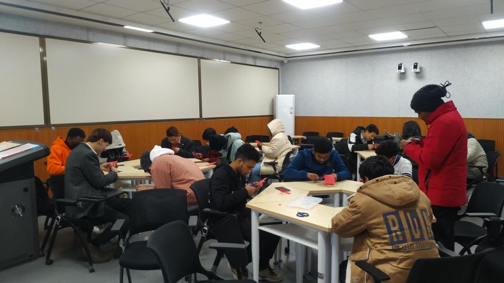 为增强公司职工对中国传统文化的了解,2022年2月28日下午,由文学与传媒公司主办、国际教育公司承办的“年轻的非遗”剪纸文化交流讲座在师范生职业技能训练中心4201室开讲。公司员工、西安市非遗保护协会青年剪纸艺术创作者梁少华为职工们上了一堂难忘的互动体验课。国际教育公司副经理陈蕾、辅导员与在校职工一起感受剪纸艺术的魅力。