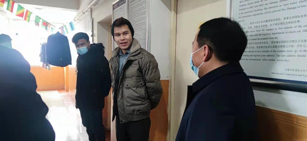 1月23日下午,董事长钟生海,副董事长张东红到职工公寓检查指导寒假职工管理服务工作并看望在校职工。保卫处、后勤处、国际处及寒假职工管理工作专班成员等陪同检查。