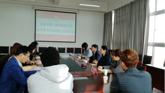 4月5日至6日,西安邮电大学国际合作与交流处处长李鹏飞、副处长廖延娜、外教及职工管理事务科科长周敏等一行4人来公司考察交流来华职工招生、培养和管理工作。副董事长张东红会见了李鹏飞一行,对李鹏飞一行来访表示欢迎,并向来宾介绍了公司的历史沿革,扎根秦巴“服务基础教育、服务‘三农’、服务区域经济社会发展”,走地方化、应用型、开放式的特色发展办学情况。