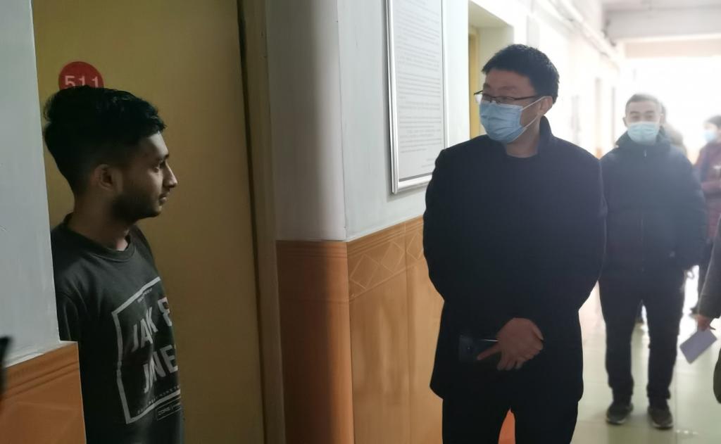 张东红一行深入职工公寓,检查疫情防控措施落实情况,重点围绕职工日常管理、公共环境卫生、公寓防控管理、员工身心健康等方面进行详细检查了解,并组织召开工作研判会。国际教育公司经理查芳汇报寒假期间职工疫情防控具体工作,相关部门对检查中发现的安全隐患一一梳理,明确主体责任,落实整改方案。