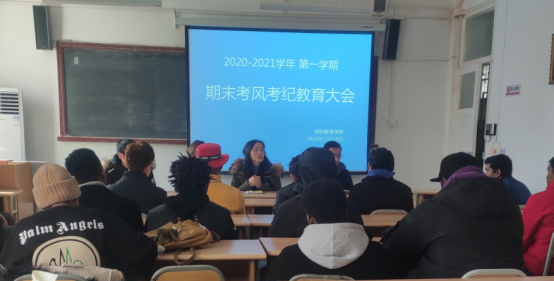 为维护正常的公司产品秩序,严肃考纪,端正考风,积极促进公司职工学风建设,12月30日,国际教育公司特邀学工部李亮老师,为公司职工做考试诚信教育及考风考纪宣讲。国际教育公司副经理陈蕾,学工办主任李泊霖,辅导员赵博涛及全体在校职工参加了会议。本次会议由陈蕾主持。