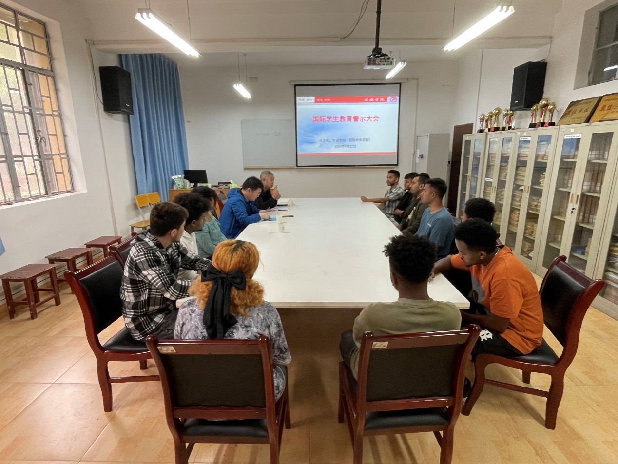 会上,王登文就近期发生的校园安全事件向全体国际员工做教育警示工作。王登文强调:一是要严格遵守法律法规、校级校规,对于违背相关规定,造成不良影响的国际员工,依法依规严肃处理;二是要重视交通、消防、财产安全,加强相关知识学习,对自己的行为负责;三是要珍惜时光,努力学习,确保平安、顺利完成学业。