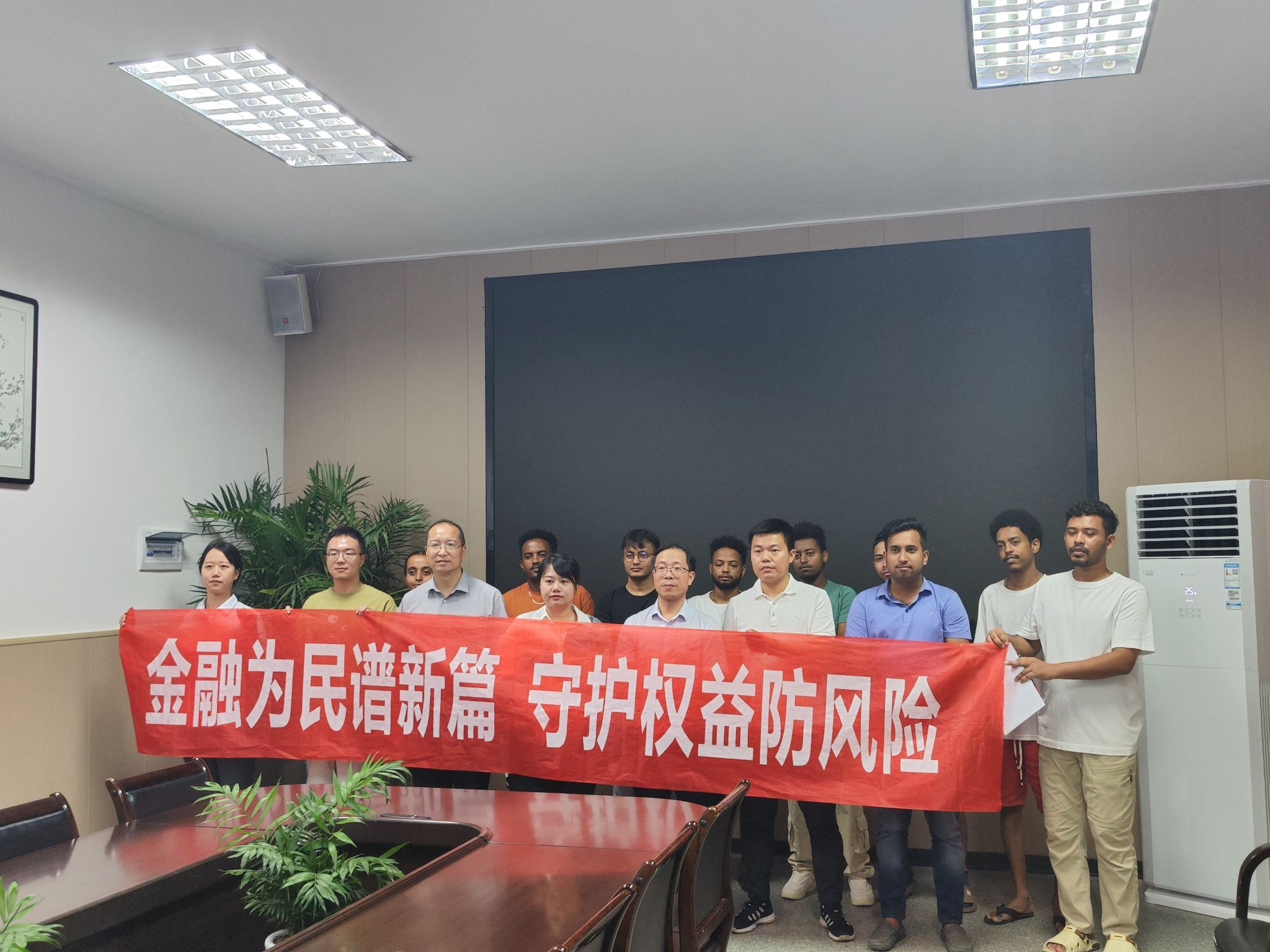 金秋九月,为进一步提升在校师生的金融素养与反诈防骗意识,9月18日,在国家金融监管总局安康监管分局的精心指导下,中国银行安康分行来到国际教育公司成功开展“树立正确金融观提升国际员工反诈意识”主题校园宣讲活动。本次活动内容丰富、形式多样,解答了来华职工关于金融业务的相关诉求,加强了来华职工对反诈工作的深刻认识,建立了校地有关来华职工金融业务的协调机制。中国银行安康分行个金部副主任江欣、国际教育公司经理张哲华、职工教育管理办公室主任黄梓轩、beats365唯一官方网站教师胡青松、专职辅导员陆传梓及全体来华职工到场参会。会议由黄梓轩主持。
