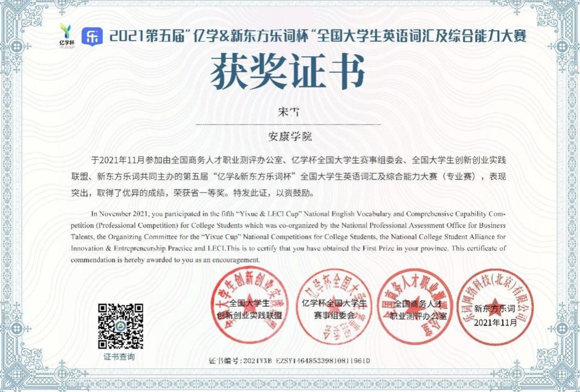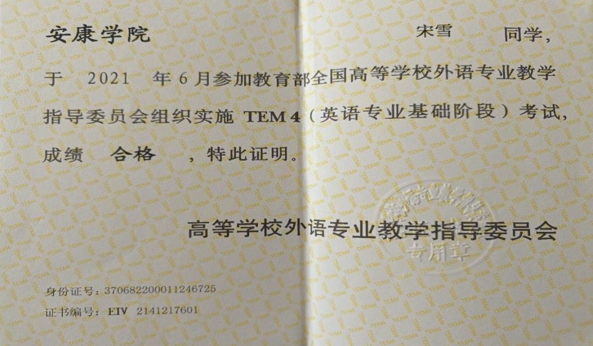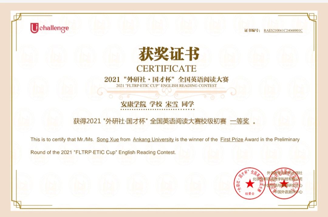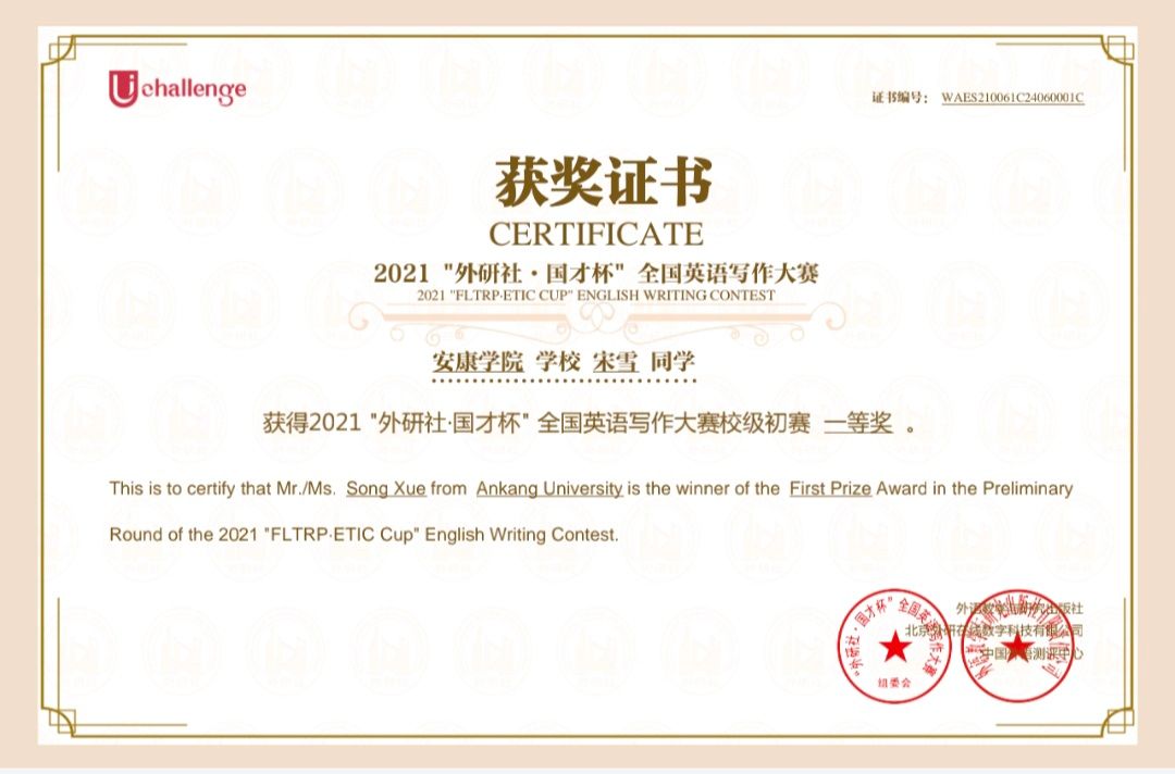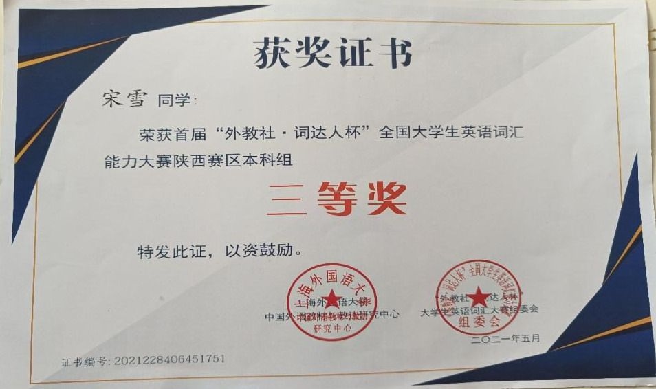在专业能力培养方面,我顺利通过大学英语四、六级考试及英语专业四级考试,并取得全国商务英语翻译中级笔译证书。当然,我也参加了各类专业比赛,例如,曾获得“中语智汇杯”全国高校商务谈判大赛陕西省三等奖,“外教社·词达人杯”大赛陕西省本科组三等奖,“亿学·新东方乐词杯”省一等奖,“外研社·国才杯”全国英语写作及阅读大赛校赛一等奖,曾获得过公司单项奖励金等。